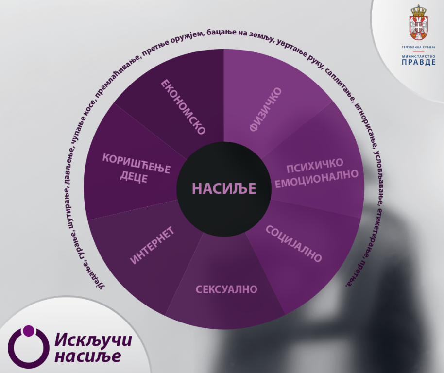 Министарство правде покренуло је интернет страницу „Искључи насиље“ (iskljuci-nasilje.rs), сa циљем подизања свести о породичном насиљу и представљању законских мера у борби против насиља у породици.